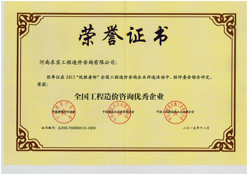 全國工程造價咨詢優秀企業